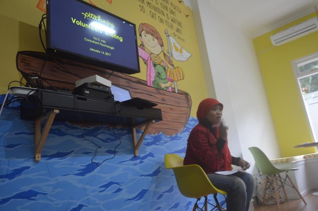 Pembekalan diberikan kepada relawan agar mereka siap dalam menjalani tugasnya menemani adik-adik Anak Pita Kuning dan keluarganya. Tidak hanya itu, materi tentang psikologi yang diberikan oleh Mba Ita untuk menjadikan relawan sebagai perpanjangan tangan dalam pemberian layanan psikososial Pita Kuning.