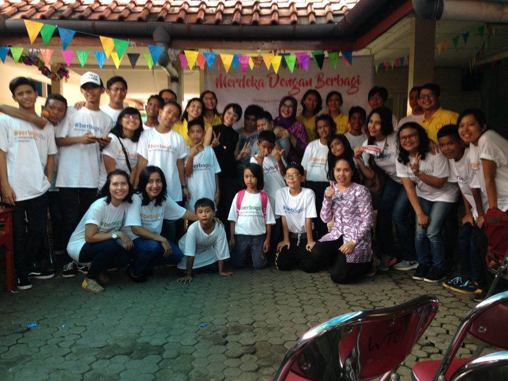 Depok, 22 September 2016 – Pita Kuning turut hadiri perayaan Syukuran #MerdekaDenganBerbagi yang diselenggarakan oleh Berbagi.com bersama teman-teman dari Sahabat Anak dan Wisma Tuna Ganda (WTG) Palsigunung. Acara yang dimulai dari pukul 09.00 WIB pada 22 September 2016 dan dihadiri oleh puluhan anak dari Sahabat Anak serta beberapa teman-teman dari WTG berjalan meriah dengan kehadiran Andien. Wisma Tuna Ganda Palsigunung sendiri beralamatkan di Jl. Raya Bogor, Pekayon, Cimanggis, Kota Depok.
