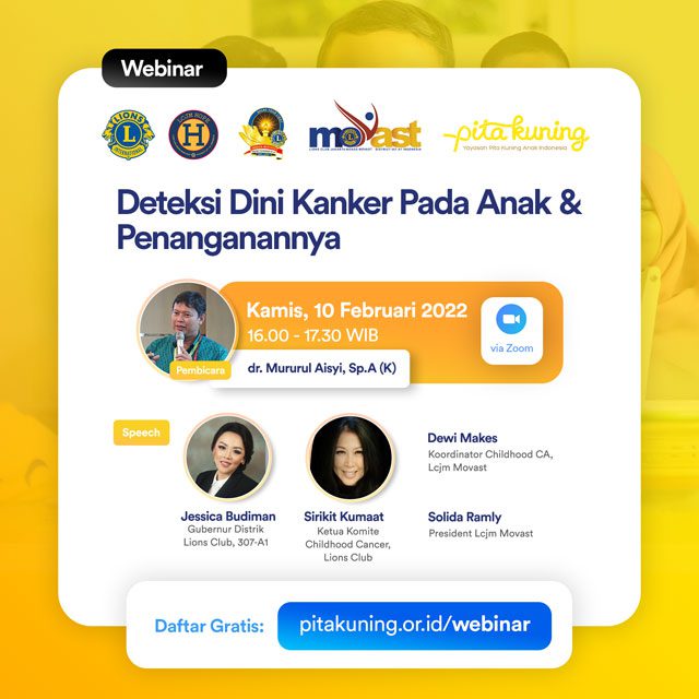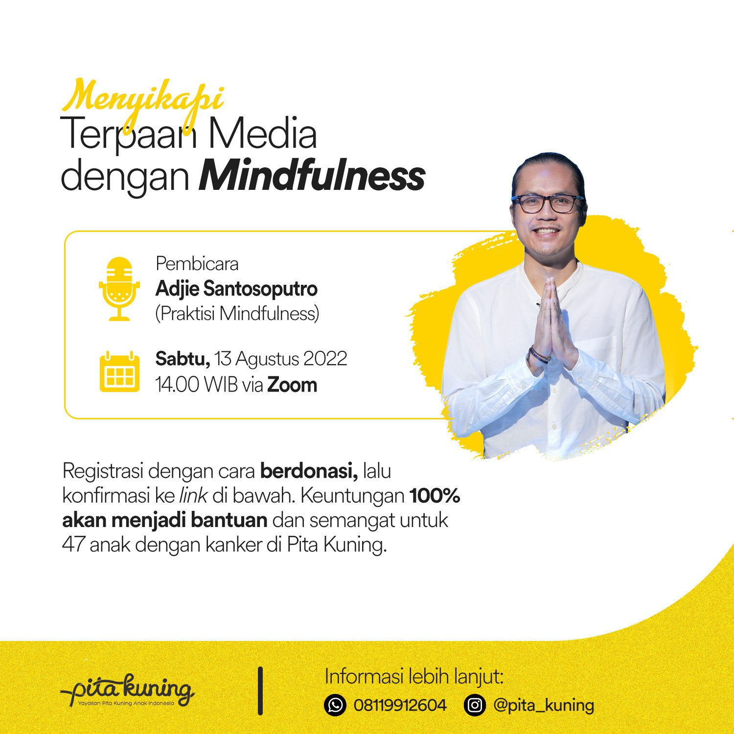 Terbuka untuk umum, minimal berdonasi Rp50.000. Dapatkan kesempatan bertanya langsung seputar mindfulness di akhir sesi! Dengan mengikuti webinar, kamu turut membantu 47 anak dengan kanker dari keluarga prasejahtera dampingan Pita Kuning. Sampai bertemu!